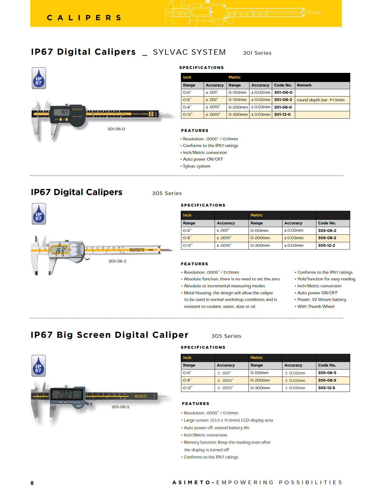 301 Series คาลิปเปอร์(IP67 Digital Calipers),Asimeto