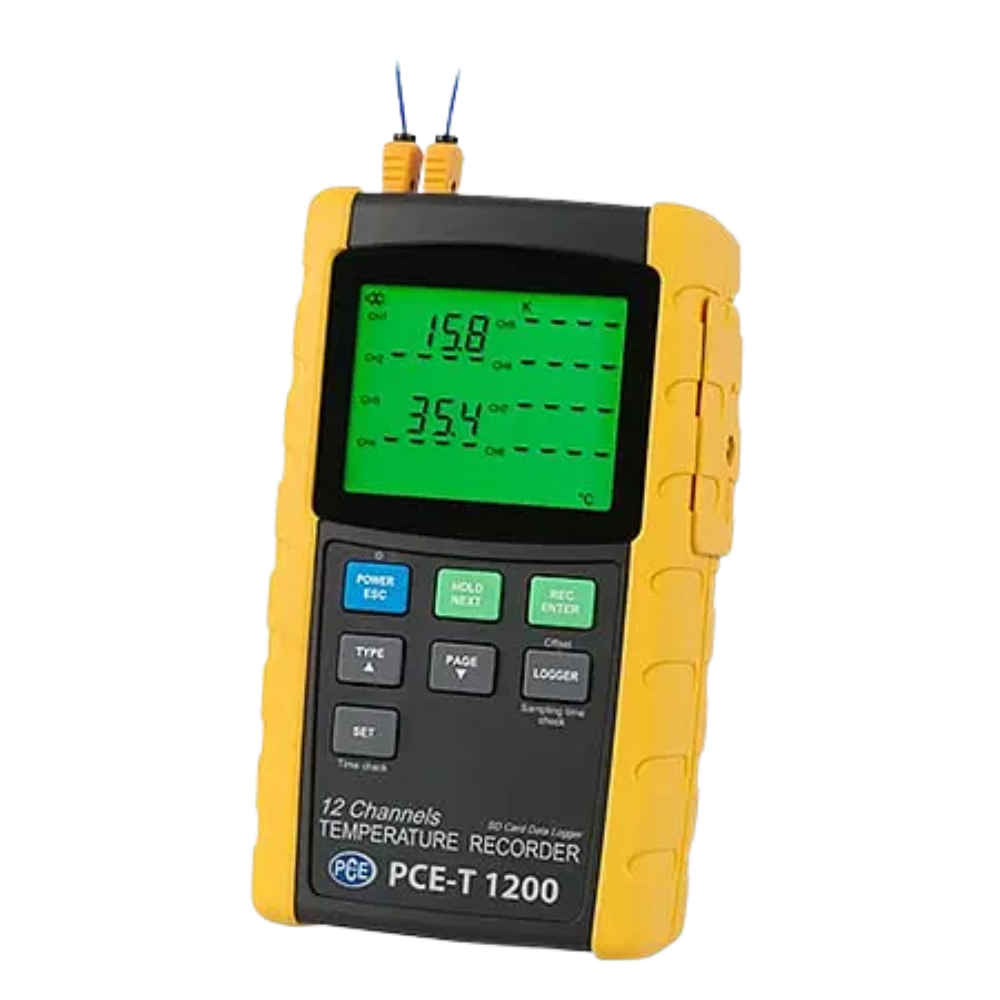 - 12-channel datalogger for temperature (°C / F)