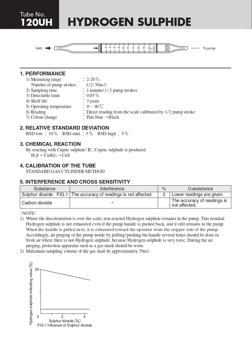 Kitagawa รหัสสินค้า No.120UH หลอดวัดความเข้มข้นของแก๊ส,Gas Detector Tube #120UH,Hydrogen Sulphide,2~20%(10/Box)