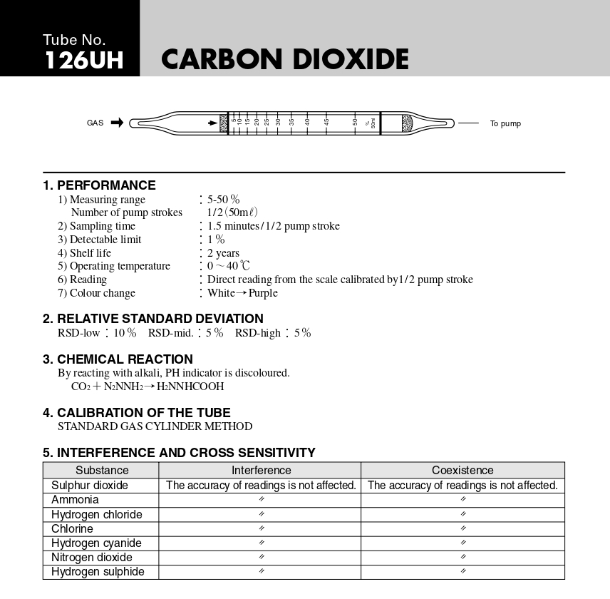 Kitagawa No.126UHหลอดวัดความเข้มข้นของแก๊สGas Detector Tube #126UH,Carbon Dioxide,5~50%(10/Box)