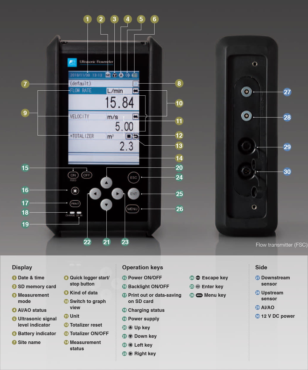 Large capacity storage on SD memory card -Flow, velocity and total data can be stored in SD memory card (data logger function). Files are saved as csv files, directly compatible with MS-Excel software | |