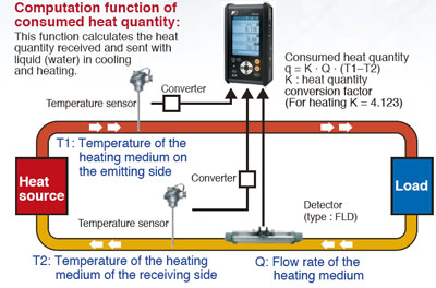Heat quantity measurement -This function calculates the heat quantity received and sent with liquid (water) in cooling and heating. Two 4-20mA inputs are available for temperature measurements |