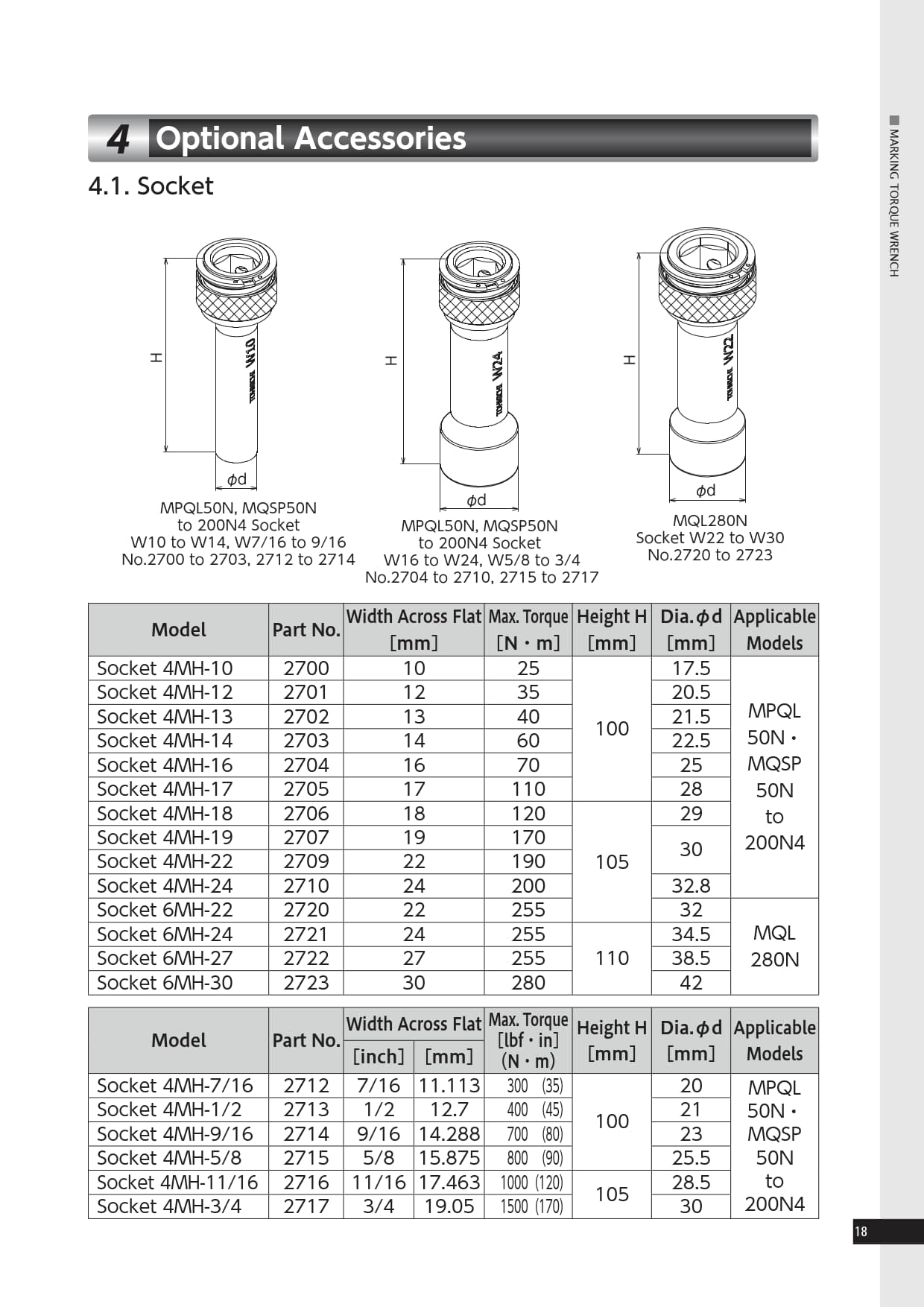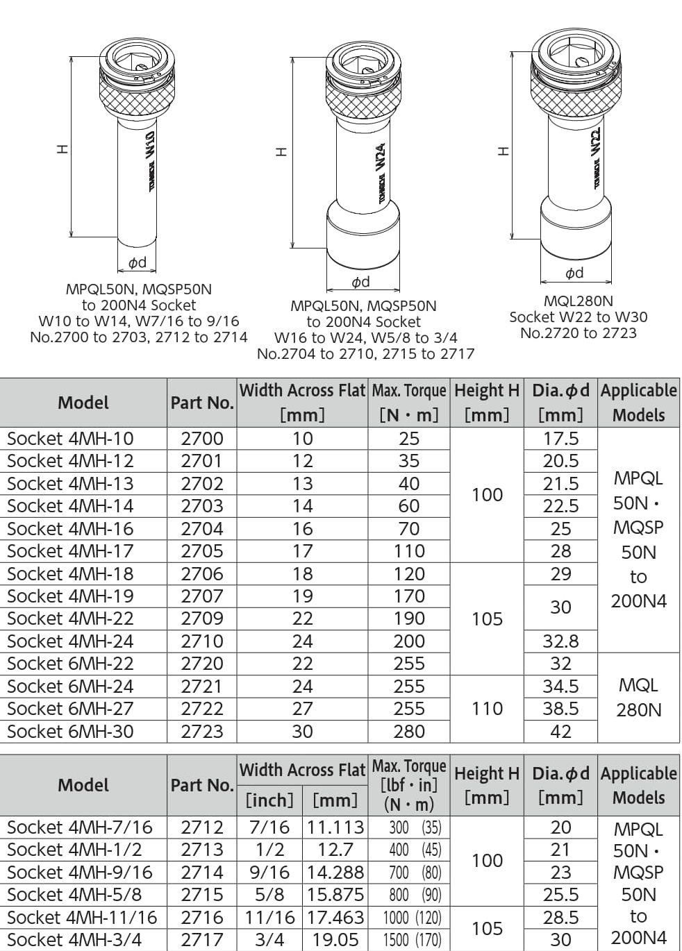 Tohnichi รหัส Socket 4MH-10-2700 ซ็อกเก็ตประแจแรงบิด,Socket, 10mm, 4MH-10, allowable torque 25N.m, 2700 for MPQL/MQSP